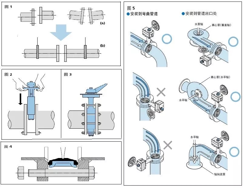 1、蝶閥必須在法蘭焊接到管道上并冷卻到環(huán)境溫度后才能安裝在法蘭上。否則焊接產(chǎn)生的高溫會(huì)影響彈性閥座的性能。 2.焊接法蘭的邊緣必須用車(chē)床加工至表面光滑,以免閥門(mén)安裝時(shí)損壞彈性閥座。法蘭面必須完全沒(méi)有損壞和變形,清除所有污垢、灰塵和異物,避免液體從閥門(mén)和法蘭接口處泄漏。 3.清潔法蘭和管道內(nèi)腔,徹底清除焊接留下的飛濺物、水垢等異物。 4.在閥門(mén)之間安裝管道時(shí),準(zhǔn)確對(duì)齊上下水管的中心對(duì)于無(wú)故障運(yùn)行至關(guān)重要。 必須避免圖 1 中不準(zhǔn)確的中心點(diǎn)。 5。安裝閥門(mén)時(shí),將管道下方的定位螺栓設(shè)置在同一高度作為支撐,并調(diào)整法蘭之間的距離,直到閥體兩側(cè)相距約6-10毫米。 請(qǐng)記住,緊急切斷閥只能從關(guān)閉位置打開(kāi)到 10° 位置。 6。將兩個(gè)螺栓插入閥門(mén)的下導(dǎo)桿,然后小心安裝,以免法蘭面損壞彈性閥座。 見(jiàn)圖2 7。然后將另外兩個(gè)螺栓放在閥門(mén)上方的導(dǎo)桿中,以確保管道和閥門(mén)之間準(zhǔn)確對(duì)中。 8。打開(kāi)閥門(mén)3次,檢查閥板與法蘭接觸是否不順暢。 9.拆下定位螺栓,將所有螺栓套在閥體周?chē)?,?duì)角擰緊,如圖3和圖4所示,直到法蘭接觸到閥體。推薦扭矩值請(qǐng)參考下表。 10.安裝執(zhí)行器時(shí),為閥門(mén)提供一個(gè)支撐,以避免閥頸變形,減少閥門(mén)與管道之間的摩擦。 11。請(qǐng)勿踩踏閥門(mén)頸部或閥門(mén)手輪。 12。請(qǐng)勿倒置安裝 DN350 或更大的閥門(mén)。 13。不要將蝶閥直接安裝在止回閥或泵上,因?yàn)檫@可能會(huì)在接觸閥板時(shí)造成損壞。 14。不要將閥門(mén)安裝在彎管和異徑管的下游側(cè),或在流量變化時(shí)校準(zhǔn)閥門(mén)。發(fā)生這種情況時(shí),建議安裝閥門(mén)的距離約為閥門(mén)公稱(chēng)直徑的 10 倍。 15。安裝閥門(mén)時(shí)要考慮哪個(gè)閥板在送液過(guò)程中會(huì)出現(xiàn)流量和壓力的變化。 ![]() |
