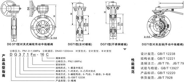 三、D371F46 蝸輪對夾式襯氟蝶閥--主要外形和連接尺寸
