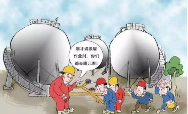 本條主要規(guī)定了儲(chǔ)罐區(qū)手動(dòng)切水、切罐、裝卸車(chē)作業(yè)管理要求。 手動(dòng)切水是指通過(guò)間斷手動(dòng)打開(kāi)切水閥放出沉積在油氣儲(chǔ)罐底部的水 切罐是指將進(jìn)出物料從一個(gè)儲(chǔ)罐切換到另一個(gè)儲(chǔ)罐 裝卸車(chē)是指將儲(chǔ)罐中物料裝車(chē)或從運(yùn)輸車(chē)輛向儲(chǔ)罐中輸送物料。 切水、切罐、裝卸車(chē)等作業(yè)環(huán)節(jié)應(yīng)當(dāng)嚴(yán)格遵守安全作業(yè)標(biāo)準(zhǔn)、規(guī)程和制度,并在監(jiān)護(hù)人員現(xiàn)場(chǎng)指揮和全程監(jiān)護(hù)下進(jìn)行。若監(jiān)護(hù)不到位,極易造成油氣泄漏,引發(fā)事故。 3.嚴(yán)禁關(guān)閉在用油氣儲(chǔ)罐安全閥切斷閥和在泄壓排放系統(tǒng)加盲板