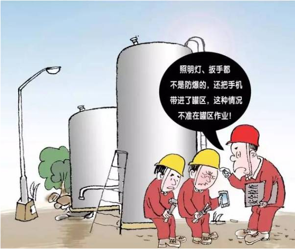 本條規(guī)定了油氣加工、調(diào)和過(guò)程中各種添加劑、助劑使用安全管理要求。 在添加使用前要了解添加劑、助劑的物化性質(zhì),并進(jìn)行風(fēng)險(xiǎn)評(píng)估,制定相應(yīng)的控制措施和應(yīng)急預(yù)案,操作過(guò)程中要使用專(zhuān)門(mén)的加劑系統(tǒng),嚴(yán)格履行操作規(guī)程。 8.嚴(yán)禁在油氣罐區(qū)使用非防爆照明、電氣設(shè)施、工器具和電子器材 本條主要規(guī)定了油氣罐區(qū)防爆器材的使用要求。油氣罐區(qū)儲(chǔ)存的介質(zhì)一般都具有易燃易爆等特點(diǎn),在油氣罐區(qū)使用非防爆工具、電氣設(shè)施、通訊器材等,存在較大安全隱患,容易引發(fā)事故。 9.嚴(yán)禁培訓(xùn)不合格人員和無(wú)相關(guān)資質(zhì)承包商進(jìn)入油氣罐區(qū)作業(yè),未經(jīng)許可機(jī)動(dòng)車(chē)輛及外來(lái)人員不得進(jìn)入罐區(qū)