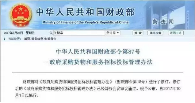 2017年10月1日起施行“最低價中標(biāo)”說再見! 近日,財(cái)政部印發(fā)財(cái)政部令87號《政府采購貨物和服務(wù)招標(biāo)投標(biāo)管理辦法》,該《辦法》提出:評標(biāo)委員會認(rèn)為投標(biāo)人的報價明顯低于其他通過符合性審查投標(biāo)人的報價,有可能影響產(chǎn)品質(zhì)量或者不能誠信履約的,應(yīng)當(dāng)要求其在評標(biāo)現(xiàn)場合理的時間內(nèi)提供書面說明,必要時提交相關(guān)證明材料;投標(biāo)人不能證明其報價合理性的,評標(biāo)委員會應(yīng)當(dāng)將其作為無效投標(biāo)處理。 ![]() 該《辦法》有如下幾點(diǎn),需要大家注意: 第一、該投標(biāo)價格與其他投標(biāo)人相比的價格,參照對象是“其他投標(biāo)人的價格”,此處不是大家常說的“成本價”,因?yàn)椤俺杀緝r”有時的確很難直接判定,爭議也很大,直接與“其他標(biāo)人的價格”相對比,易操作,例如:若九個投標(biāo)人,八個投標(biāo)人報價為1億左右,另一位若是8000萬,可能就需要進(jìn)行“合理性”解釋。 第二、價格明顯低于其他投標(biāo)人的報價情況下,有可能影響產(chǎn)品質(zhì)量或者不能誠信履約。這里用詞是“有可能”,可以認(rèn)為若價格過低,都存在“有可能”,所以免不了要澄清。 第三、應(yīng)當(dāng)要求其在評標(biāo)現(xiàn)場合理的時間內(nèi)提供書面說明,必要時提交相關(guān)證明材料。這里要注意的是“評標(biāo)現(xiàn)場合理的時間”,這個意義重大,避免了場外人情,也是說“投標(biāo)”是否有效,當(dāng)場決定。 第四、投標(biāo)人不能證明其報價合理性的,評標(biāo)委員會應(yīng)當(dāng)將其作為無效投標(biāo)處理。這里用詞是“應(yīng)當(dāng)”,而不是“可以”,就是該《辦法》直接規(guī)定這種情況就是“無效投標(biāo)”。 目前,一些地方在招投標(biāo)中存在的“低價中標(biāo)”現(xiàn)象,導(dǎo)致在最低價中標(biāo)的競爭中,呈現(xiàn)良者退出和劣者胡來的困局。這已經(jīng)成為企業(yè)提升產(chǎn)品質(zhì)量的突出障礙,亟待治理和規(guī)范。而在基建和地產(chǎn)行業(yè)。最低價中標(biāo)往往使承建商無利可圖甚至賠本吆喝,承建商的應(yīng)對手段往往是工程停建、惡意拖欠薪酬等。最低價中標(biāo)往往從單純的經(jīng)濟(jì)糾紛,發(fā)酵成社會問題。 87號令要求有可能影響產(chǎn)品質(zhì)量或者不能誠信履約的報價提供說明或證明其合理性,勢必對最低價中標(biāo)的現(xiàn)象帶來一定遏制,“餓死同行、累死自己、坑死業(yè)主”現(xiàn)象有望得到改善! 中華人民共和國財(cái)政部令第87號 ——政府采購貨物和服務(wù)招標(biāo)投標(biāo)管理辦法 財(cái)政部對《政府采購貨物和服務(wù)招標(biāo)投標(biāo)管理辦法》(財(cái)政部令第18號)進(jìn)行了修訂,修訂后的《政府采購貨物和服務(wù)招標(biāo)投標(biāo)管理辦法》已經(jīng)部務(wù)會議審議通過?,F(xiàn)予公布,自2017年10月1日起施行。 部長 肖捷 2017年7月11日 第一章 總 則 第一條 為了規(guī)范政府采購當(dāng)事人的采購行為,加強(qiáng)對政府采購貨物和服務(wù)招標(biāo)投標(biāo)活動的監(jiān)督管理,維護(hù)國家利益、社會公共利益和政府采購招標(biāo)投標(biāo)活動當(dāng)事人的合法權(quán)益,依據(jù)《中華人民共和國政府采購法》(以下簡稱政府采購法)、《中華人民共和國政府采購法實(shí)施條例》(以下簡稱政府采購法實(shí)施條例)和其他有關(guān)法律法規(guī)規(guī)定,制定本辦法。 第二條 本辦法適用于在中華人民共和國境內(nèi)開展政府采購貨物和服務(wù)(以下簡稱貨物服務(wù))招標(biāo)投標(biāo)活動。 第三條 貨物服務(wù)招標(biāo)分為公開招標(biāo)和邀請招標(biāo)。 公開招標(biāo),是指采購人依法以招標(biāo)公告的方式邀請非特定的供應(yīng)商參加投標(biāo)的采購方式。 邀請招標(biāo),是指采購人依法從符合相應(yīng)資格條件的供應(yīng)商中隨機(jī)抽取3家以上供應(yīng)商,并以投標(biāo)邀請書的方式邀請其參加投標(biāo)的采購方式。 第四條 屬于地方預(yù)算的政府采購項(xiàng)目,省、自治區(qū)、直轄市人民政府根據(jù)實(shí)際情況,可以確定分別適用于本行政區(qū)域省級、設(shè)區(qū)的市級、縣級公開招標(biāo)數(shù)額標(biāo)準(zhǔn)。 第五條 采購人應(yīng)當(dāng)在貨物服務(wù)招標(biāo)投標(biāo)活動中落實(shí)節(jié)約能源、保護(hù)環(huán)境、扶持不發(fā)達(dá)地區(qū)和少數(shù)民族地區(qū)、促進(jìn)中小企業(yè)發(fā)展等政府采購政策。 第六條 采購人應(yīng)當(dāng)按照行政事業(yè)單位內(nèi)部控制規(guī)范要求,建立健全本單位政府采購內(nèi)部控制制度,在編制政府采購預(yù)算和實(shí)施計(jì)劃、確定采購需求、組織采購活動、履約驗(yàn)收、答復(fù)詢問質(zhì)疑、配合投訴處理及監(jiān)督檢查等重點(diǎn)環(huán)節(jié)加強(qiáng)內(nèi)部控制管理。 采購人不得向供應(yīng)商索要或者接受其給予的贈品、回扣或者與采購無關(guān)的其他商品、服務(wù)。 第七條 采購人應(yīng)當(dāng)按照財(cái)政部制定的《政府采購品目分類目錄》確定采購項(xiàng)目屬性。按照《政府采購品目分類目錄》無法確定的,按照有利于采