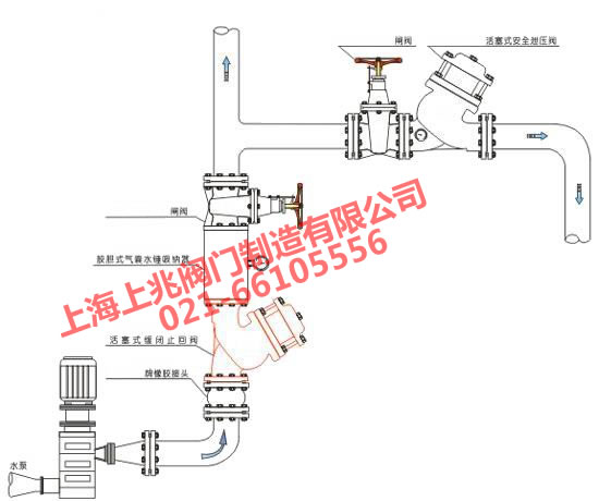 產(chǎn)品介紹 一、YQ98004型過濾活塞式緩閉止回閥--工作原理: YQ98004型過濾活塞式緩閉止回閥安裝在自來水廠及高層建筑給水系統(tǒng),以及其它給水系統(tǒng)的水泵出口管道上,防止介質(zhì)倒流,防止水錘及水擊現(xiàn)象的產(chǎn)生。當水泵開啟時,水通過導管進入中腔,推動活塞上升,主閥開關(guān)。當水泵停止工作時,活塞在回水壓力下降,由于進口處針形閥比出口球閥流量小,因此活塞緩慢下降,主閥也隨之緩慢關(guān)閉。一閥兼具電動閥,逆止閥和水錘消除器,可以有效地提高供水系統(tǒng)的安全可靠性。我公司生產(chǎn)YQ98004型過濾活塞式止回閥平穩(wěn)可靠,消除壓力余波。 二、YQ98004型過濾活塞式緩閉止回閥--特點: 1、消除水錘效果好。將緩開、速閉消除水錘的技術(shù)原理一體化,防止開泵水錘和停泵水錘的產(chǎn)生。 2、操作方便。只需操作水泵電機啟閉按扭,閥門即按照水泵操作規(guī)程實現(xiàn)自動開閉。 3、節(jié)能效果好。閥體采用了全通道流線型直流式設(shè)計,壓力損失小、流量大、具體積小、重量輕。 三、YQ98004型過濾活塞式緩閉止回閥--主要技術(shù)參數(shù):
