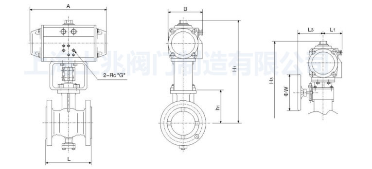 三、氣動V型調(diào)節(jié)球閥--主要外形及連接尺寸: