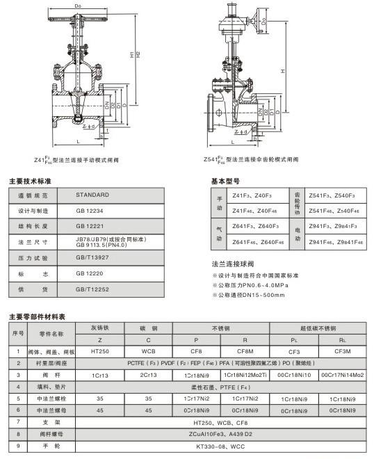 產(chǎn)品介紹 一、Z41J襯膠法蘭閘閥概述: 1、Z41J 襯膠法蘭閘閥產(chǎn)品是一種最帶見(jiàn)的啟閉閥門,利用兩側(cè)面密封呈楔狀的閘板來(lái)接通或截?cái)喙苈分薪橘|(zhì),楔式閘閥不允許微量開(kāi)啟在管路中作節(jié)流裝置用,以免因高速流動(dòng)的介質(zhì)沖蝕而加快密封面的損壞。 2、襯膠閘閥廣泛應(yīng)用于化工,石油,天然氣,環(huán)保,城市管道,燃?xì)夤芫€等工業(yè)部門,介質(zhì)的流向不受限制,全開(kāi)時(shí),密封面受工作介質(zhì)的沖蝕比截止閥小,體形比較簡(jiǎn)單,鑄造工藝性較好. 二、Z41J襯膠法蘭閘閥特點(diǎn): A 產(chǎn)品連接件少,整體鋼性好。 B 截流速度快。 C 開(kāi)度限位機(jī)構(gòu)方便,靈活,精確。 D 體形小巧,外形美觀。 E 操作簡(jiǎn)單,省力,維修方便。 F 流體阻力小,密封面受介質(zhì)的沖蝕小。 G 介質(zhì)流向不愛(ài)限制,不擾流,不降低壓力。 三、Z41J襯膠法蘭閘閥標(biāo)準(zhǔn)規(guī)范: 設(shè)計(jì)制造標(biāo)準(zhǔn):GB/T 12234 結(jié)構(gòu)長(zhǎng)度標(biāo)準(zhǔn):GB/T 12221-2005 連接法蘭標(biāo)準(zhǔn):GB/T 9113 壓力溫度等級(jí):GB/T 12224-2005 試驗(yàn)檢驗(yàn)標(biāo)準(zhǔn):GB/T 13927-2008 四、Z41J襯膠法蘭閘閥零件材料與工況: 1.閥體材質(zhì):碳鋼、不銹鋼。[可選] 2.密封材質(zhì):流道全襯四氟。 3.填料: PTFE。 4.閥桿材質(zhì):不銹鋼304、不銹鋼316、不銹鋼2cr13。 五、Z41J襯膠法蘭閘閥尺寸: ![]()