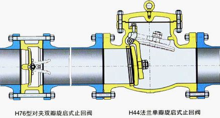 H76W型不銹鋼對夾雙瓣旋啟式止回閥、H76H型碳鋼對夾雙瓣旋啟式止回閥。